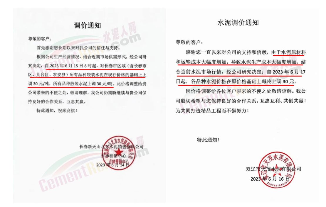 大連山水水泥有限公司價格調整通知稱,鑒于目前市場大宗原材料價格上漲,環保治理力度不斷加大等因素影響,經研究決定,自 2023年6月21日10時起,公司各品種水泥出廠價每噸上調20元。