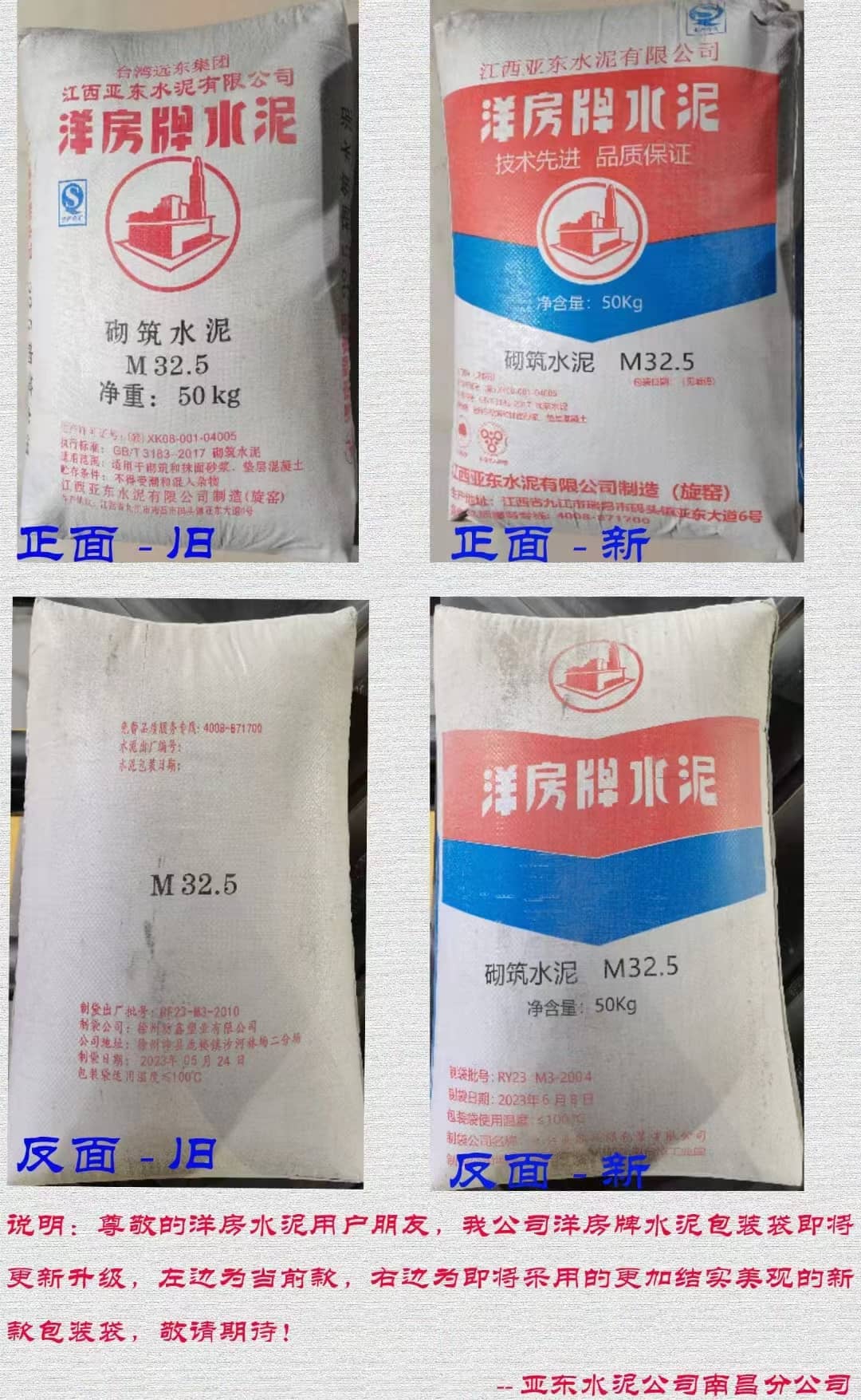 江西亞東水泥洋房牌M32.5砌筑水泥包裝換新。