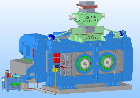 輥壓機負荷運行中,兩輥間物料的連續性和密閉性對輥壓機的穩定運行至關重要,直接影響輥壓機效率的發揮。長期以來,輥壓機在生產環節中,往往忽視了料床對輥壓機的影響,輥間物料溢散,循環負荷大,設備磨損加劇,而輥壓機效率不高,導致能耗居高不下,嚴重影響經濟指標。新型的進料裝置---DHS弧形進料裝置完美的解決了這個問題。