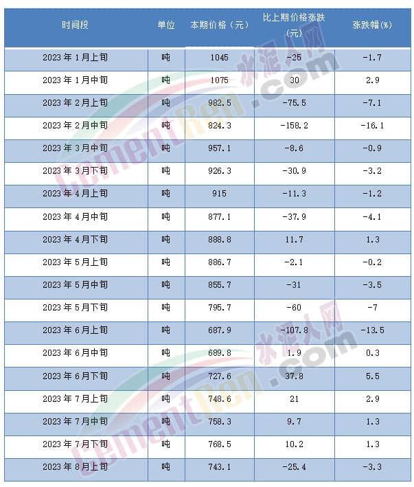 8月14日,國家統(tǒng)計(jì)局發(fā)布的2023年8月上旬流通領(lǐng)域重要生產(chǎn)資料市場價(jià)格變動(dòng)情況顯示,普通硅酸鹽水泥(P.O42.5散裝)水泥報(bào)價(jià)311.7元/噸,且為自5月上旬以來第10次突破年內(nèi)最低價(jià)。