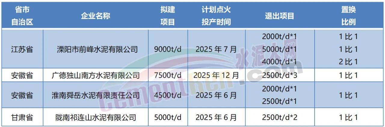 另有4個新建水泥粉磨項目為2:1比例置換,分別為:
