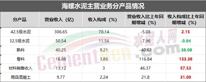 今年上半年,海螺集團積極推進項目建設發展,持續做強做優水泥主業,積極延伸產業鏈。其中,骨料營業收入同比去年增加116.84%,收入構成同比去年增加133.36%;材料銷售營業收入同比去年增加46.37%,收入構成同比去年增加57.53%;商品混凝土營業收入同比去年增加21.8%,營收占比同比去年增加31.08%。