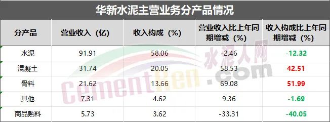 今年上半年,華新水泥混凝土營業收入同比去年增加58.53%,營收占比同比去年增加42.51%。骨料營業收入同比去年增加69.08%,營收占比同比去年增加51.99%。水泥及商品熟料營收及收入占比同比去年均有所減少。