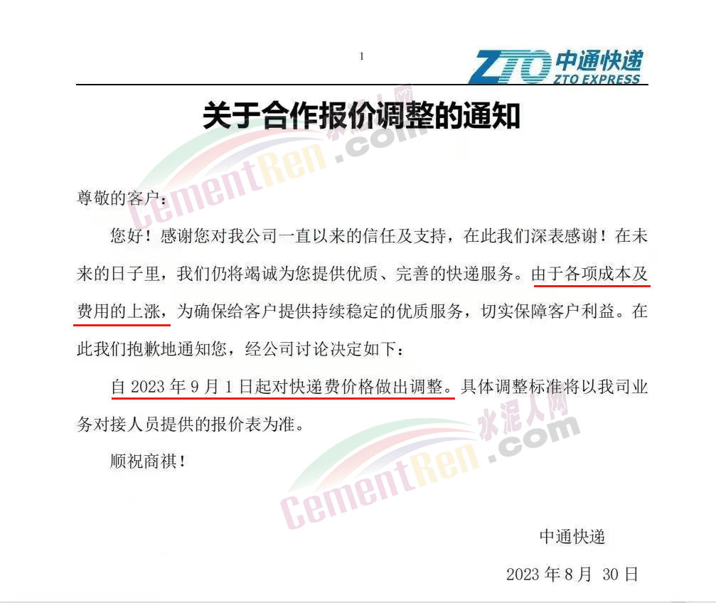 中通快遞通知,由于各項成本及費用的上漲,為確保給客戶提供持續(xù)穩(wěn)定的優(yōu)質(zhì)服務(wù),切實保障客戶利益。經(jīng)公司討論決定自2023年9月1日起對快遞費價格作出調(diào)整。