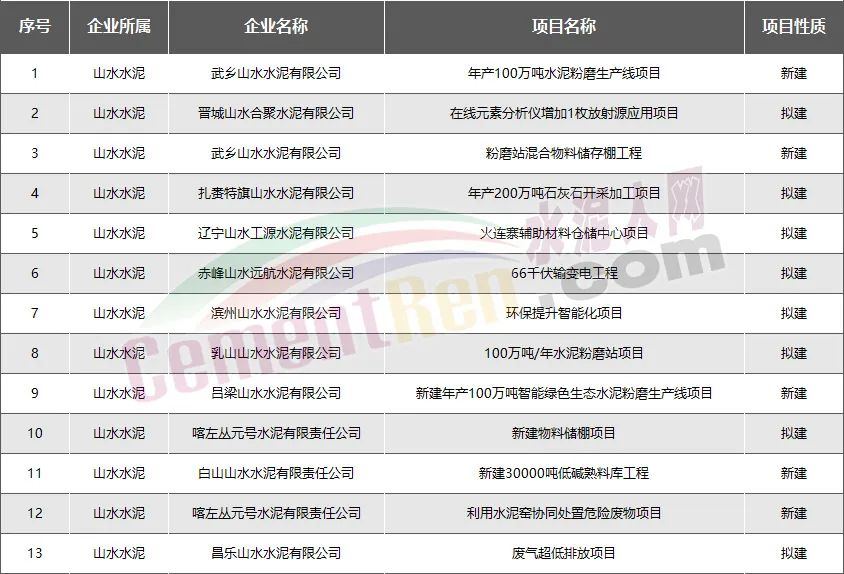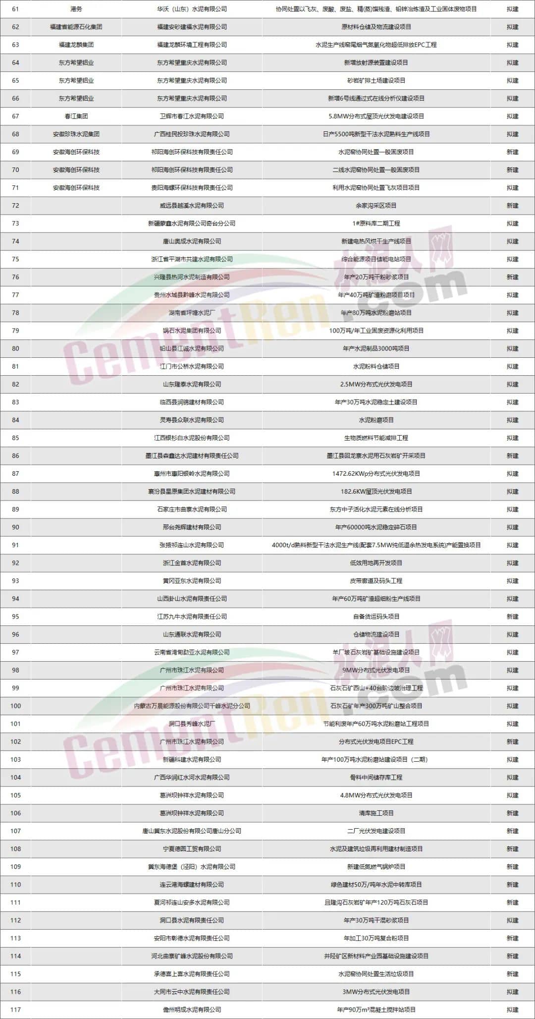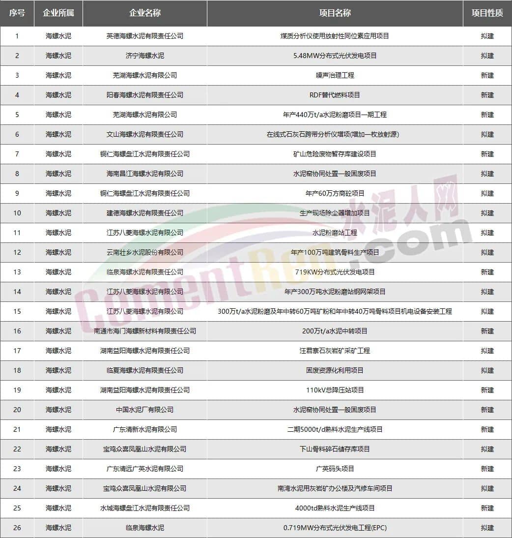 據(jù)水泥人網(wǎng)不完全統(tǒng)計,2023年下半年以來,中建材集團、海螺水泥、華新水泥、華潤水泥、金隅集團、紅獅控股集團、山水水泥、臺泥水泥旗下共有304個新建擬建項目,其中光伏、骨料、混凝土、水泥窯協(xié)同處置、智能化相關項目居多。