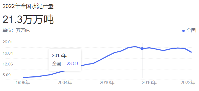 有數據顯示,目前全行業產能過剩率已高達到40%以上,也就是將有近一半的產能將處于閑置。2022年水泥產量僅21.3億噸,已經是近十年來最低的一年了。可是卻沒能遏制自去年下半年以來水泥價格的“跌跌不休”,而各區域水泥企業的庫存壓力不僅未得到緩解反而因雨季的到來以及新建產能的陸續釋放而壓力倍增。