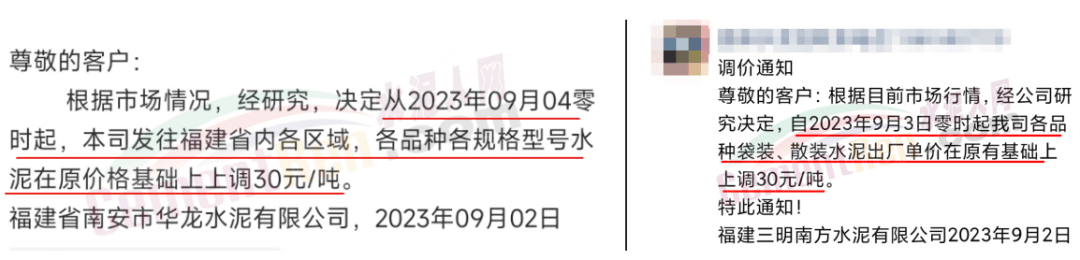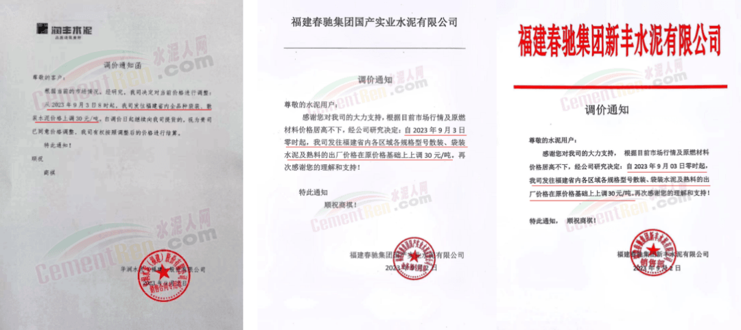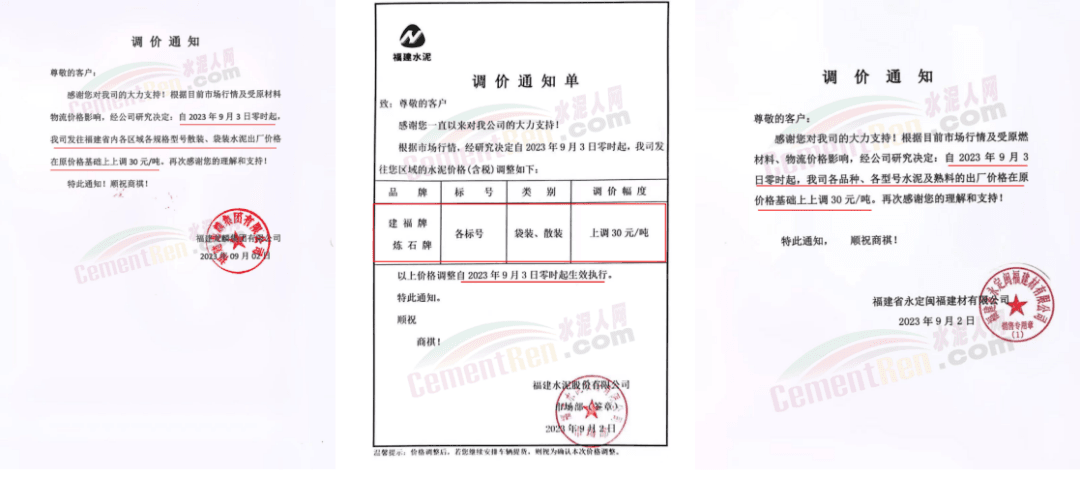 9月3日,占福建省熟料產(chǎn)能近60%,前五強的華潤水泥、福建水泥、紅獅水泥、金牛水泥、龍麟集團等10多家企業(yè)陸續(xù)通知全省熟料及各品種水泥價格上調(diào)30元/噸。