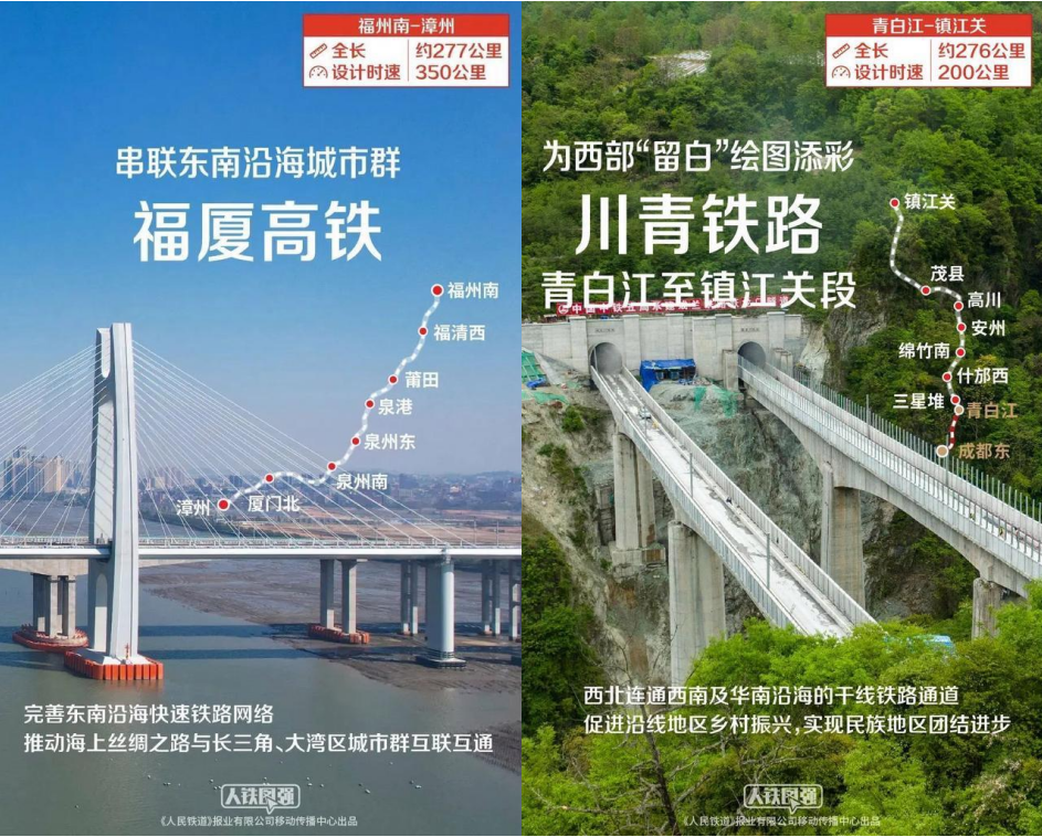 成宜高鐵、滇藏鐵路麗江至香格里拉段、敘永至畢節(jié)鐵路、龍龍鐵路龍巖至武平段等多個項目建設(shè)也已接近尾聲。