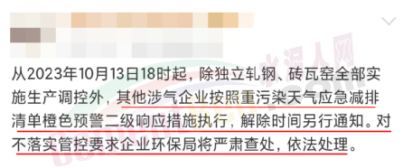 實施重污染天氣橙色預警二級響應措施,河北、河南、山東水泥企業、混凝土企業停產、工地停工、物流停運
