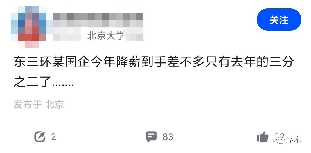 經濟環境下行,打碎了“鐵飯碗”,一位央企的員工反饋說,之前他們城市公司有400多人,現在組織優化,只剩下兩三百人了,裁員近50%。